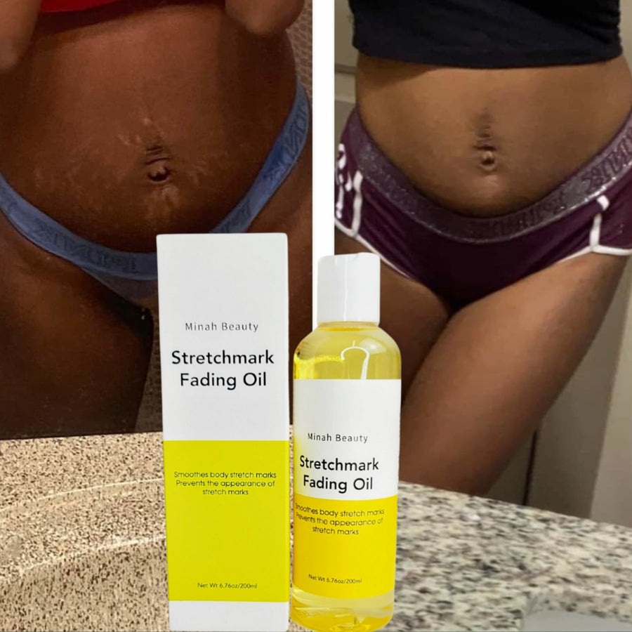Stretch Mark Fading Oil is a gentle, deeply hydrating formula designed to fade the appearance of stretch marks, tighten skin, and restore smooth texture. Safe for use during and after pregnancy, this oil absorbs quickly without clogging pores.