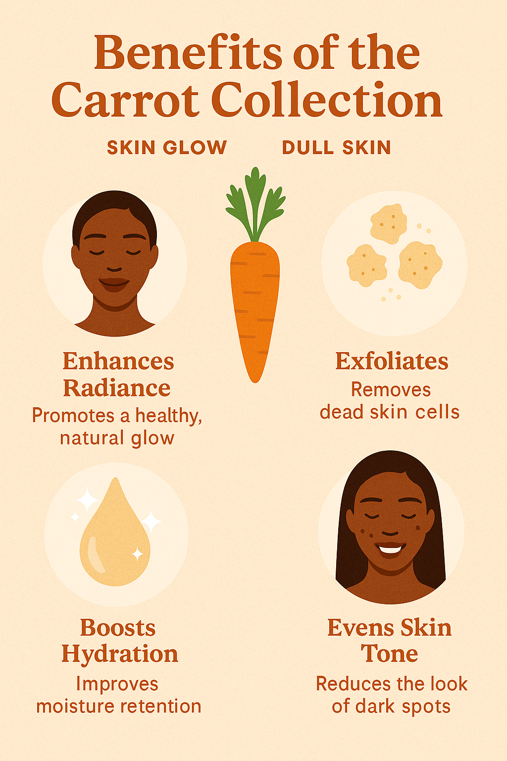 Carrot Glow Combo is a complete skincare bundle designed to brighten dull skin, deeply hydrate, and gently exfoliate for a glowing, refreshed complexion. Ideal for all skin types, this combo combines natural carrot-based ingredients with effective cleansing, exfoliation, and hydration.